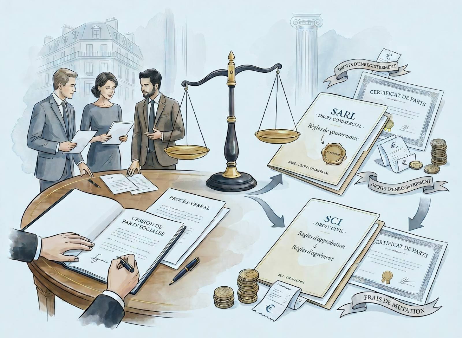Dans une SAS ou une SA, on parle d’actions. Dans une SARL, une EURL ou une SCI, on parle de parts sociales. La différence n’est pas purement technique. Dans les sociétés à parts sociales, l’identité des associés compte davantage. C’est la raison pour laquelle la cession est souvent plus encadrée.